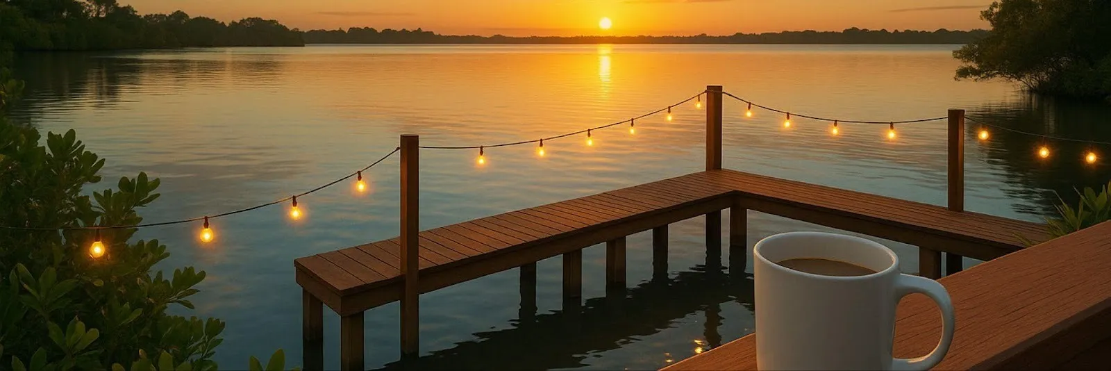 - Sip morning coffee during a lagoon sunrise